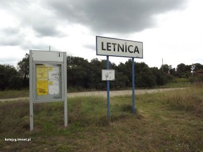 Dawniej stacja, obecnie przystanek kolejowy położony w km 16,497 linii. Obiekty kolejowe zlokalizowano w południowej części wsi z dala od głównej części miejscowości. Stało się tak dlatego, że główna część Letnicy jest położona na zboczu wzgórza liczącego sobie ponad 140 metrów n.p.m. Linia kolejowa omija tą górę od północy i północnego zachodu i dopiero obniżenie terenu w południowej części wsi dało możliwość poprowadzenia tam linii kolejowej i usytuowania punktu kolejowego.