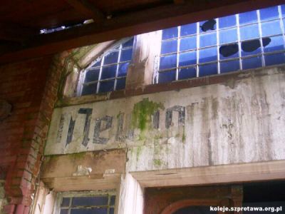 07. Nad wejsciem do poczekalni zachowal sie slabo widoczny napis z nazwa miejscowosci w jezyku niemieckim